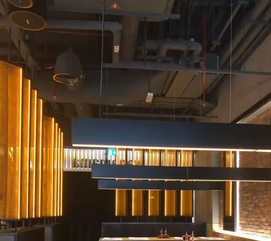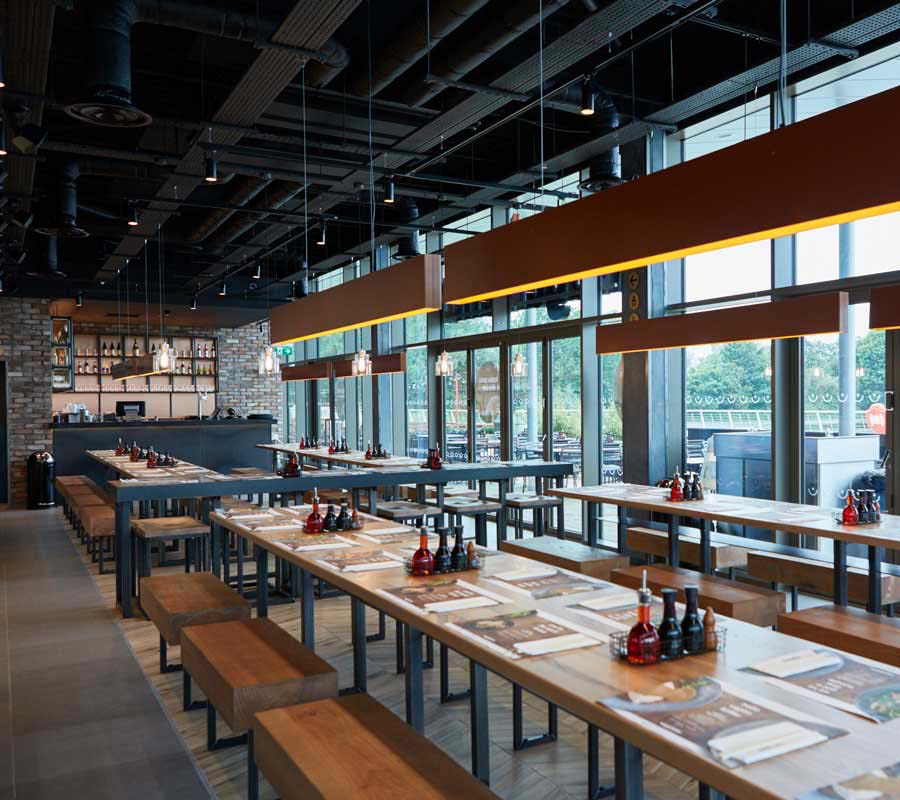 Working with the project architects speakers were colour matched to the ceiling design and colour branding. Speakers were installed to agreed appointed locations (typically along metal containment trays). A number of audio zones were created to work independently and collectively respecting the restaurant layout/design against customer and table occupation capacities during different times of the day/s.